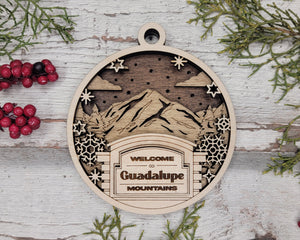 Welcome Guadalupe Mountains Personalized 3D Wood Christmas Ornaments, Welcome Sign Ornament