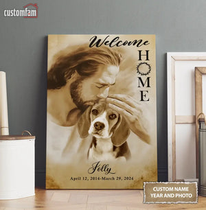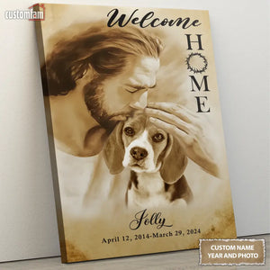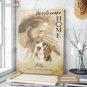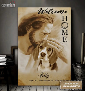 Welcome Home Custom Photo Canvas Prints, Jesus Wall Art, Dog Memorial Gifts