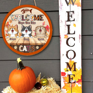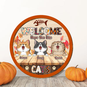 Welcome Hope You Like Cats Personalized 2 Layered Christmas Wood Sign, Gifts For Cat Lovers