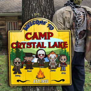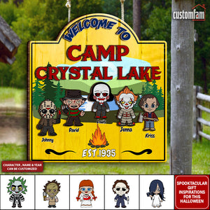 Welcome To Camp Crystal Lake Horror Camping Wooden Sign, Halloween Custom Welcome Campsite Sign Decor