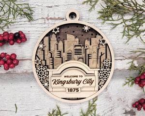 Welcome To Kingsbury City Personalized 3D Wood Christmas Ornaments, Welcome Sign Ornament, Christmas Gifts