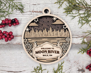 Welcome To Moon River Personalized 3D Wood Christmas Ornaments, Welcome Sign Ornament