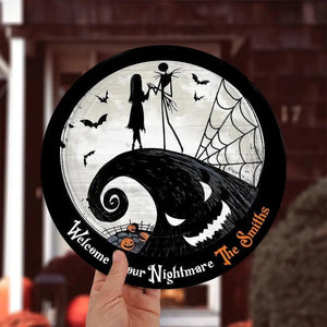 Welcome To Our Nightmare Personalized Family Name Wooden Sign, Night Before Christmas, Halloween Decor