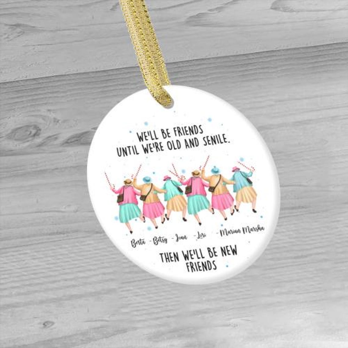 We'll Be Friends Until We're Old And Senile Ceramic Ornament, Funny Christmas Ornament, Xmas Gift for Friends