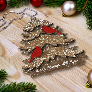 We're Always With You Cardinals Memorial Wood Christmas Ornament, Sympathy Gift