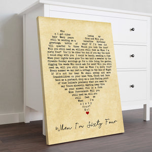 When I'm Sixty Four Vintage Heart Quote Song Lyric Art Print Canvas Print Frames