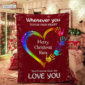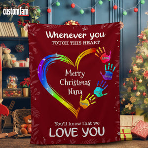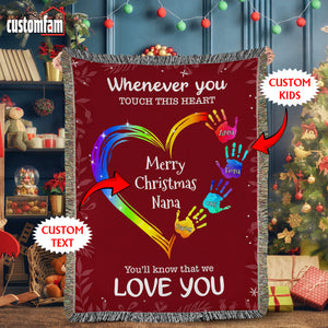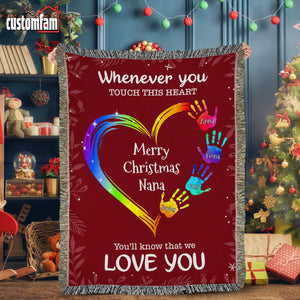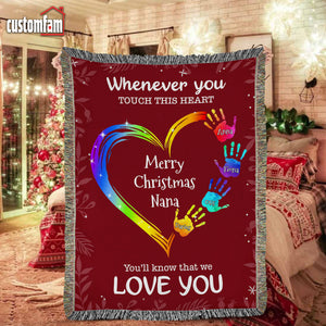 Whenever You Touch This Heart Christmas Woven Blanket, Fleece Blanket, Gift For Grandma Nana