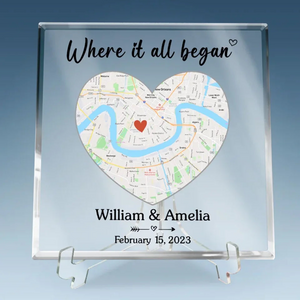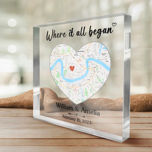 Where It All Begin Custom Map Acrylic Plaque, Long Distance Relationship Gift, Personalized Gifts For Couples
