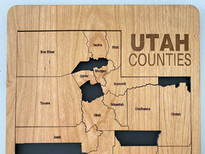 Wooden Puzzle Map of Utah Counties, Travel Bucket List