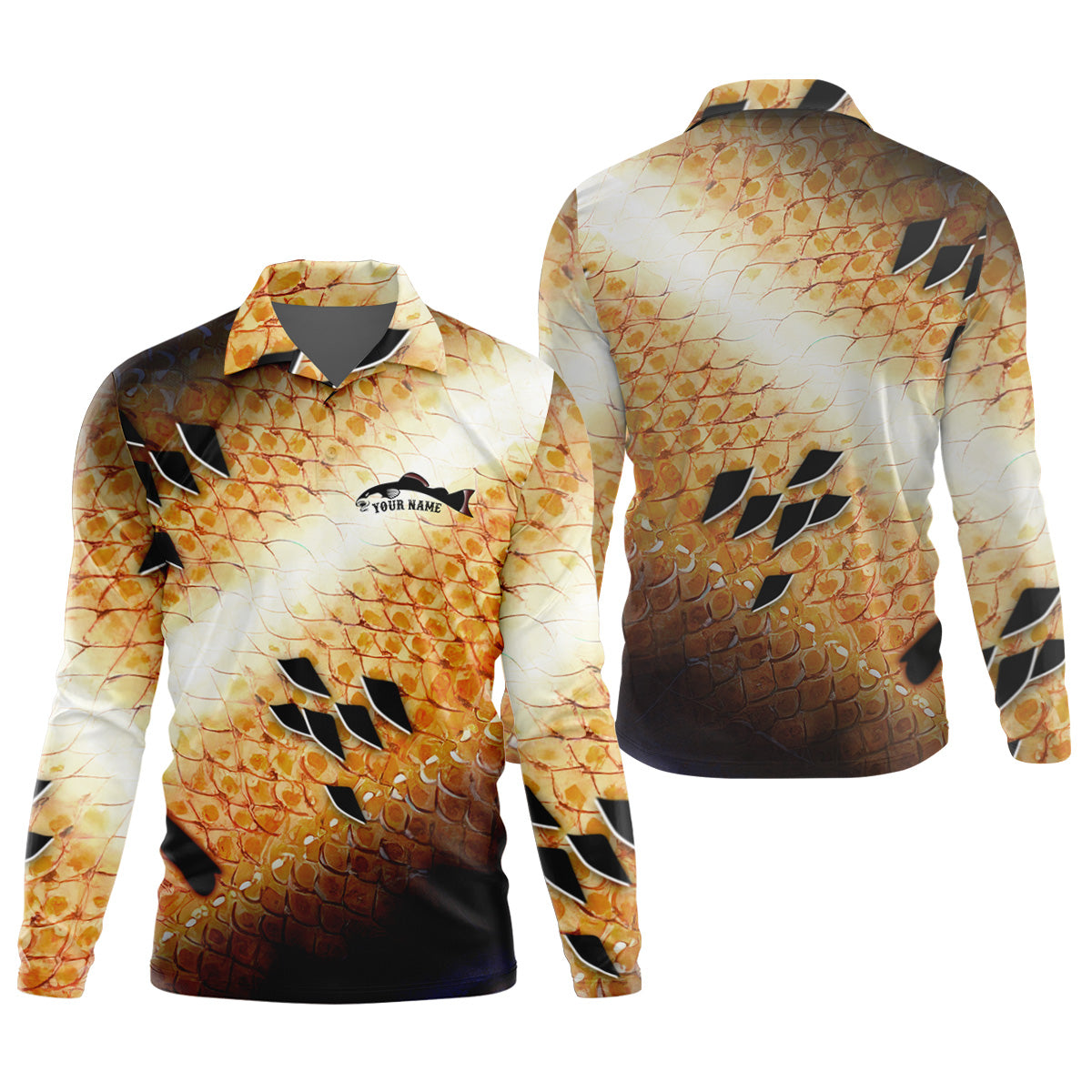 Yellow Fish Scale Fishing UPF Shirts, Ladies Long Sleeve Fishing Shirt, Women Fishing Shirt
