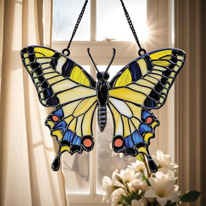 Yellow Swallowtail Butterfly Acrylic Suncatcher Ornament, Garden Art