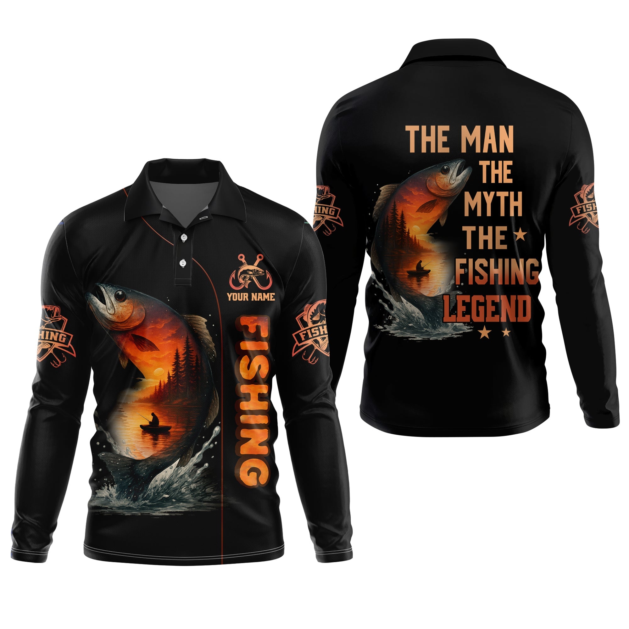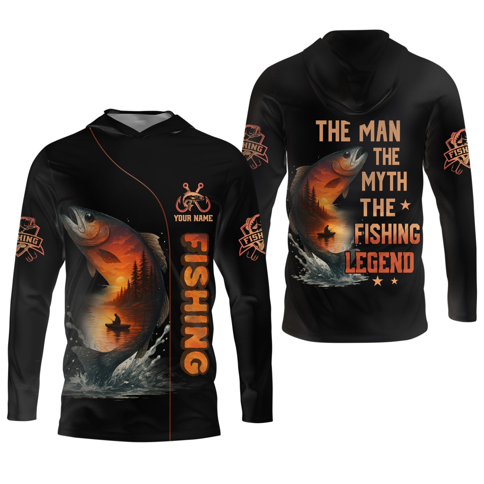 The Man The Myth The Legend, Hooded UPF Shirt, Tournament Fishing Shirt, Funny Fishing Tee Shirts, Long Sleeve Tops