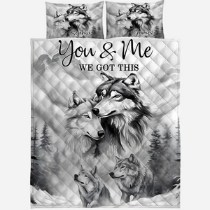 You and Me We Got This Black White Wolf Couple Quilt Bed Sets, Couple Bedding Set, Couple Valentine Gift