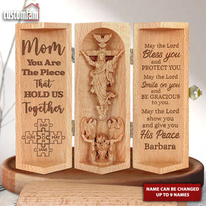 You Are The Piece That Hold Us Together Mom Openable Wooden Cylinder Sculpture Of Jesus Christ, Mother's Day Gift, Christian Mothers Day Gifts