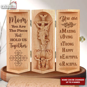 You Are The Piece That Hold Us Together Openable Wooden Cylinder Sculpture Of Jesus Christ, Mother's Day Gift, Gift For Mom