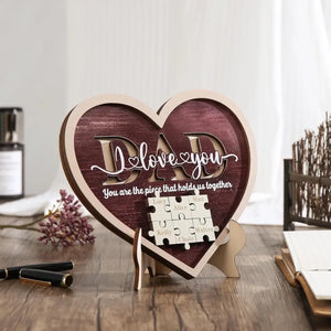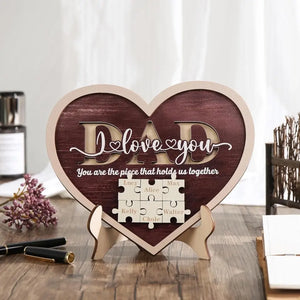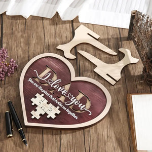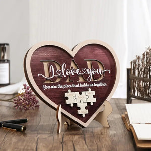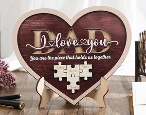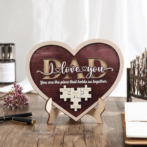 You Are The Piece That Holds Us Together Personalized Father's Day Puzzle Heart 2 Layered Wooden Sign