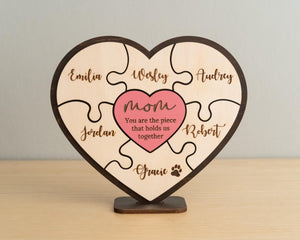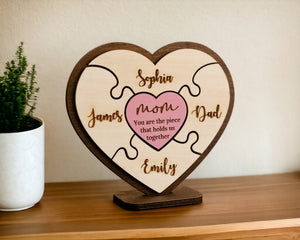 You Are The Piece That Holds Us Together Heart Puzzle Wood Sign, Mother's Day Gift, Gift For Mom