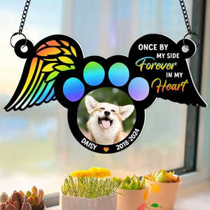 Once By My Side Forever In My Heart Suncatcher Ornament, Pet Memorial Suncatcher, Dog Remembrance Gift