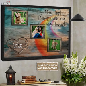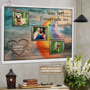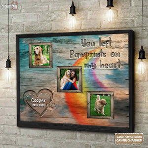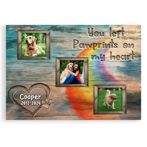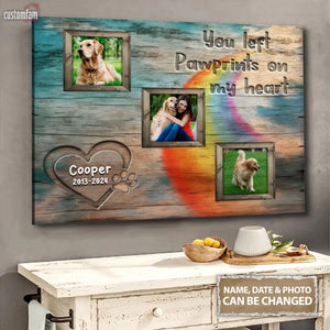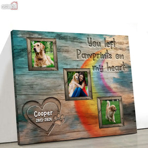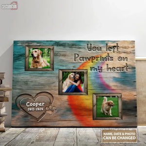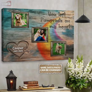 You Left Pawprints On My Heart Personalized Photo Canvas, Pet Memorial Gifts, Gift For Pet Lovers, Dog Loss Gift