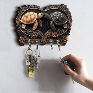 You & Me Personalized Turtle Key Rack, Wall Mount Key Holder, Gift For Couple