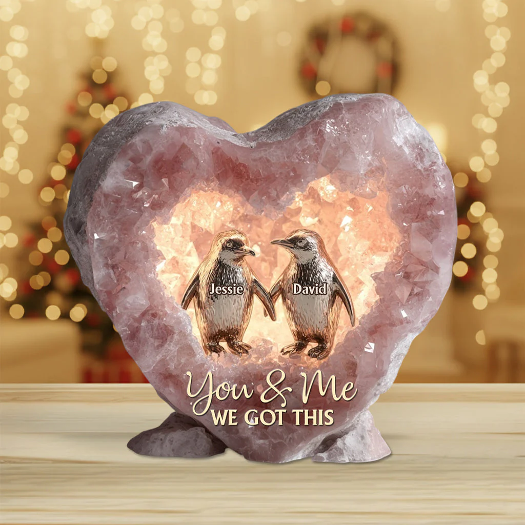 You & Me We Got This Rose Quartz Color Penguin Couple Acrylic Plaque, Personalized Valentines Gift