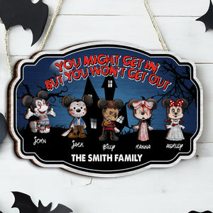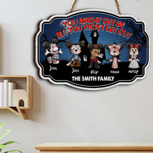 You Might Get In But You Won't Get Out Personalized 2 Layered Family Halloween Wood Sign, Horror Gift