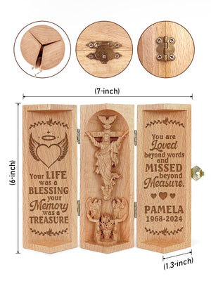 Your Life Was A Blessing, Openable Wooden Cylinder Sculpture of Jesus Christ, Christ Decor