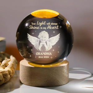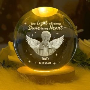 Your Light Will Always Shine In My Heart Crystal Lamp, Sympathy Gifts, Memorial Gift