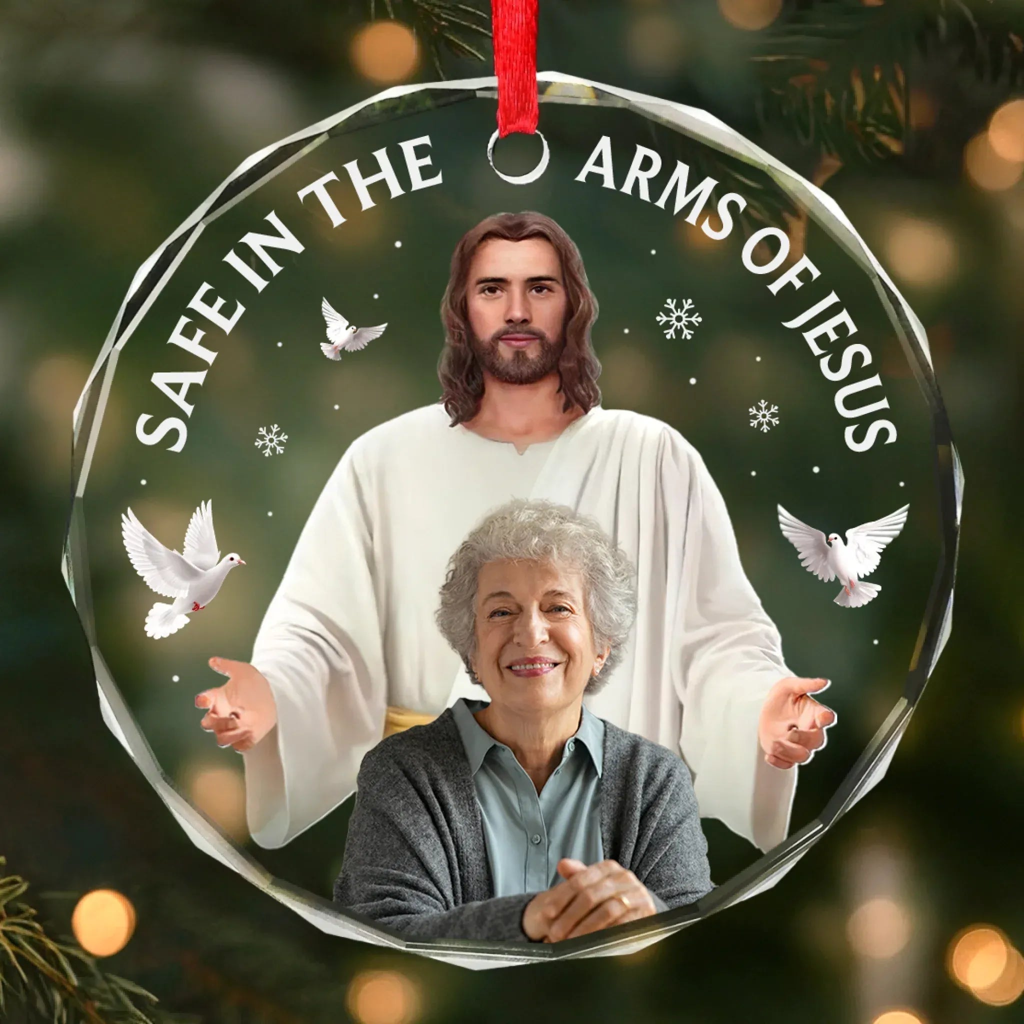 Your Spirit Shines Eternal Custom Photo Glass Ornament, Sympathy Gifts, Christmas Tree Ornament