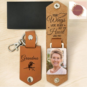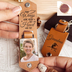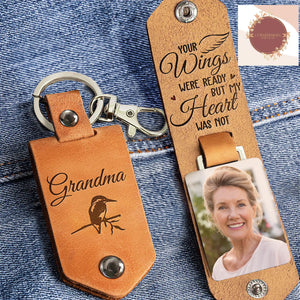 Your Wings Were Ready But My Heart Was Not Personalized Photo Leather Keychain, Memorial Gift