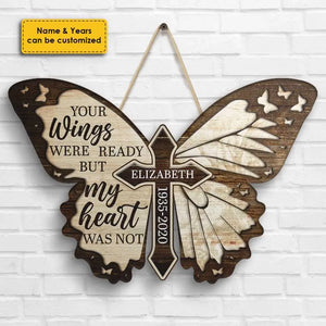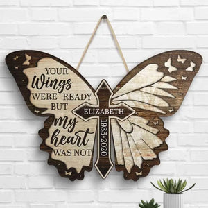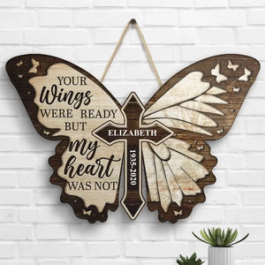 Your Wings Were Ready, But My Heart Was Not Personalized Shaped Wood Sign, Memorial Gift